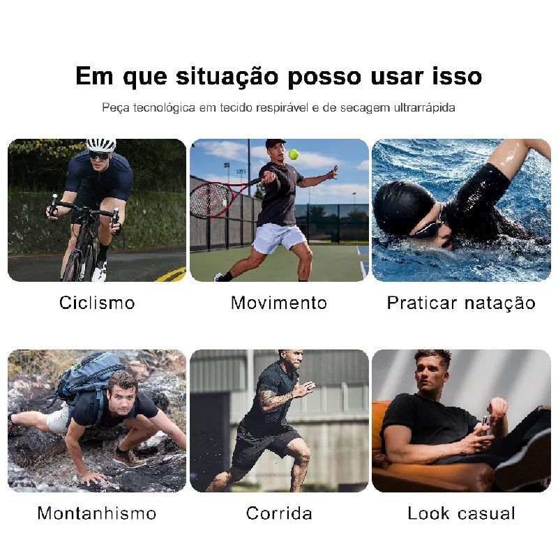 Você pode treinar pesado e ainda assim se sentir leve. A Camiseta Masculina Esportiva Quick Dry foi feita pra quem sua de verdade e não quer ficar preso numa camiseta encharcada.